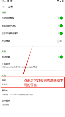 3、在设置页面,选择下方的语言,点击进入就能看到各种语言