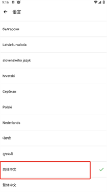 4、最后滑动到最下方,找到简体中文,点击即可设置成