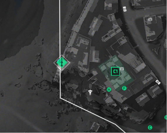 - 第五个任务点:在C2上方,位于最高一排平房中间。