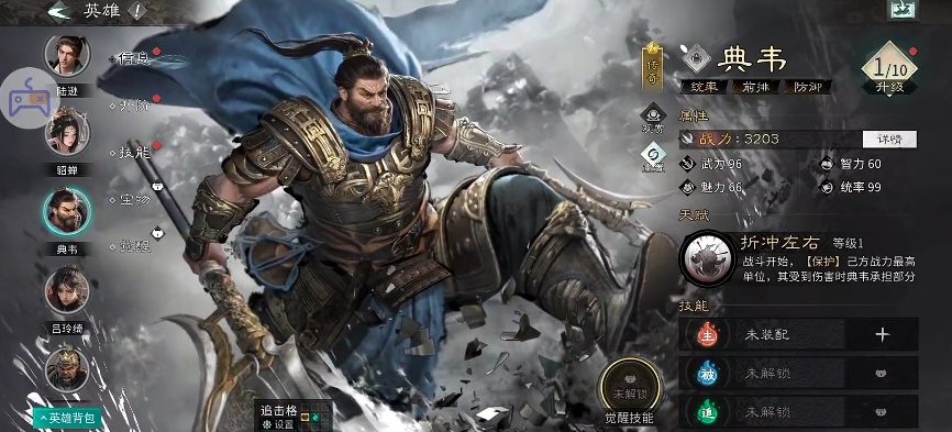 为了弥补黄忠的短板,三分弓队引入了典韦这位猛将。典韦的天赋技能 “折冲左右”,在战斗中作用显著。他能够敏锐地察觉到己方战力最高的英雄(通常即为黄忠),并迅速对其展开保护。当黄忠受到伤害时,典韦会挺身而出,承担部分伤害,同时还能发动强有力的反击,给予敌人一次攻击。这一技能不仅大大提升了队伍的整体生存能力,还让敌人在攻击黄忠时,不得不有所顾忌,因为他们很可能会遭受典韦的反击。在实际战斗中,典韦就如同队伍的坚实护盾,守护着黄忠,让黄忠能够在相对安全的环境下进行输出。