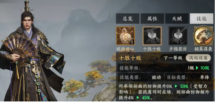 - 谋略属性成长仅次于诸葛亮、司马懿等顶级谋士,功能性更为全面。