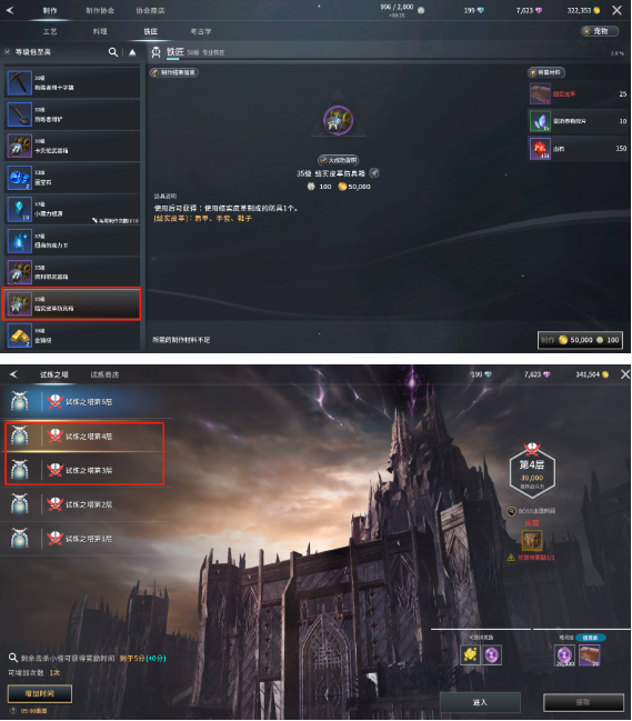 - 月卡玩家:建议制作30级的轻盈皮革防具,所需的轻盈皮革可以在试炼塔的1层和2层获得。