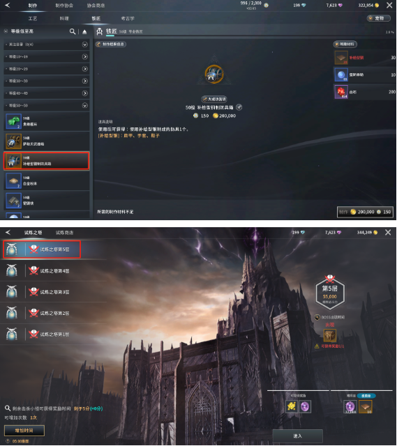 - 神豪玩家:建议制作50级的铜制防具,所需的补给铜可以在试炼塔的5层获得。