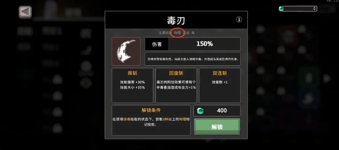 4.毒刃:解锁“涂毒”后,只携带“涂毒”“多重打击”“憎恨之刺”“启动飞镖”这四个技能进入游戏,集齐后放弃游戏,解锁“毒刃”技能。