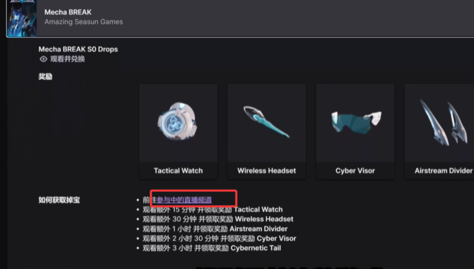 2、进入掉宝与奖励功能,找到解限机游戏,看到参与中的直播频道,点击进入