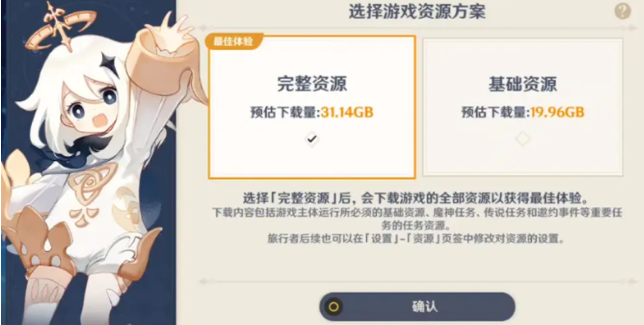 5.7版本更新后,移动端玩家可根据设备存储空间选择下载完整资源或基础资源。完整资源含各种任务,后续可再次下载。
