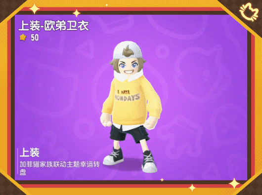 肠肠们前往商城,使用糖果或棒棒糖就可以抽取【加菲猫家族】的联动幸运转盘主题皮肤了