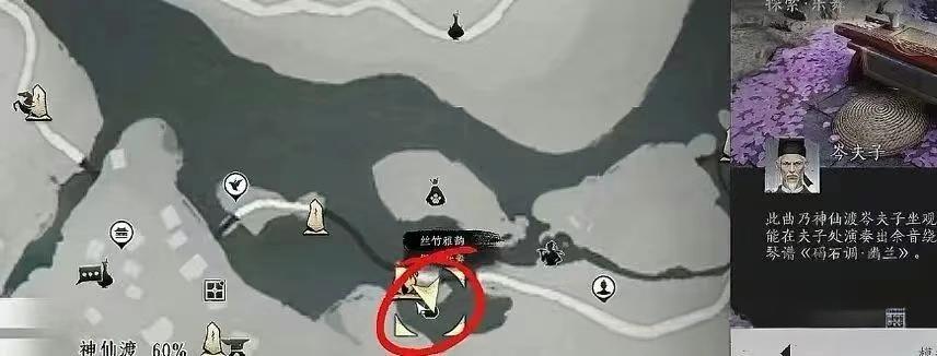 地图的标记处分别寻找折笑、花前、郑文焕达成余音缭绕评价