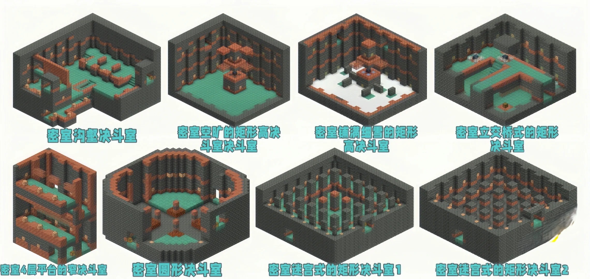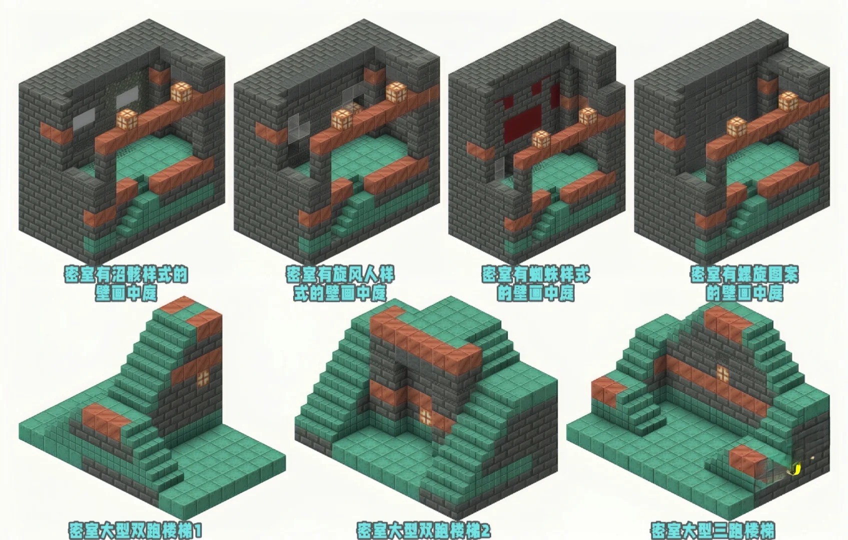 试炼密室是1.21的全新结构建筑,由多个大小不一的相通结构组成,主要分为入口、柱廊、楼道、交叉口和决斗室。其中,决斗室是让冒险者们和怪物战斗的场地,里面有十种以上的怪物试炼刷怪笼,完成试炼就可以从试炼刷怪笼获得相关的奖励。