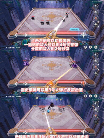 第二关:可能会出现一些具有特殊能力的敌人,如具有护盾的敌人或能够反弹炮弹的敌人。对于具有护盾的敌人,可以先使用冻结炮弹冻结敌人,再使用贯穿炮弹穿透护盾进行攻击;对于能够反弹炮弹的敌人,可以使用反弹炮弹来反弹敌人的攻击,同时注意躲避敌人的反弹攻击。