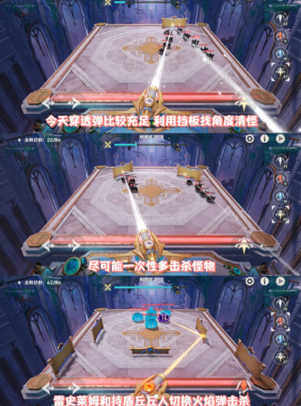 第一关:主打元素是火系以及其元素反应。注意炮弹不要挥霍,合理利用火系元素反应来击败敌人。例如,可以先使用火系炮弹攻击敌人,再使用其他炮弹进行补充攻击,以达到更高的伤害输出。