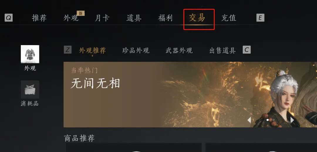 (其中外观这个分栏就是我们赚来的宝钱去消费的地方,消耗品这一栏就是给我们我们卖货赚钱的。)