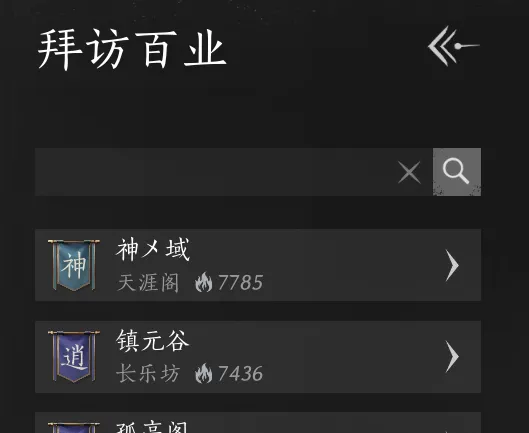 2)来到自己百业驻地后,按ESC,在屏幕的最上方找到拜访,然后点击。