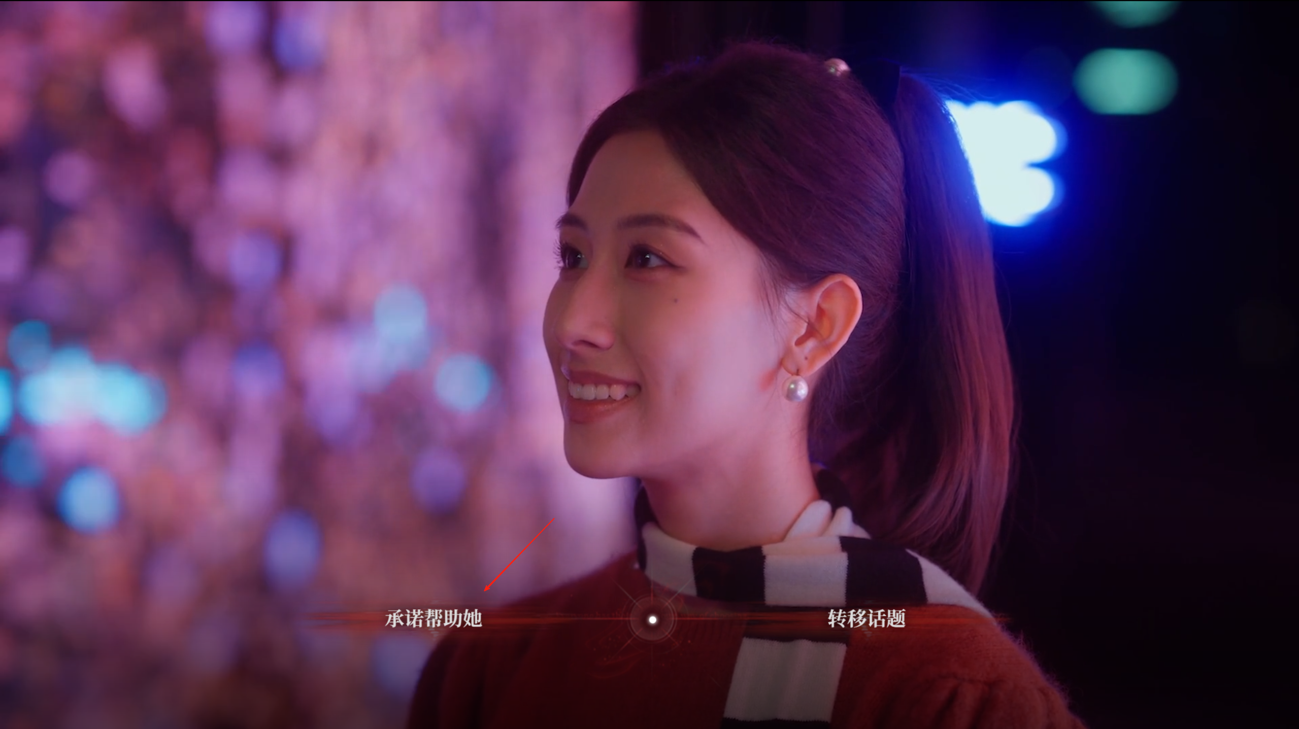 八、根据对话剧情,唐晓甜想要成为电影演员,这里弹出选项,选择“承诺帮助她”