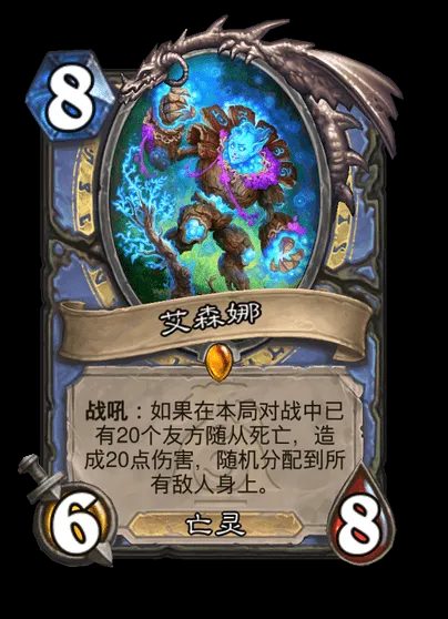 艾维娜也是跟错了人的,它的效果强吗?毫无意外非常强,但是你要是问它给牧师强吗?我只能说存疑。和9费的奥丁一样,除非优势局面否则空过9费还是很危险的举动,而且奥丁挺过这一回合后就能开始给压力,而艾维娜需要过3回合才能有收益,最后权衡再三,看在强力效果的份上我也是给3分的保守分,至于发现出来的1费艾维娜5分,全职业通用的效果,谁都能吃满。