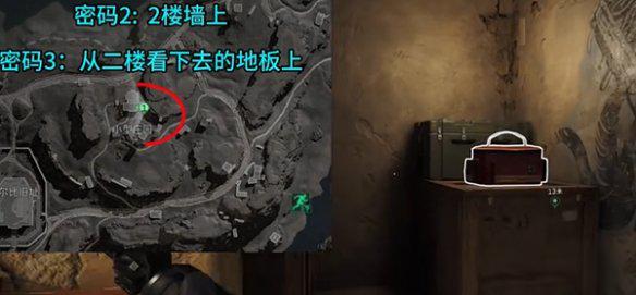 密码分散在密码门旁墙面、左侧通道墙头、西楼一号位架子及行政楼集装箱,破解后进入获取奖励。