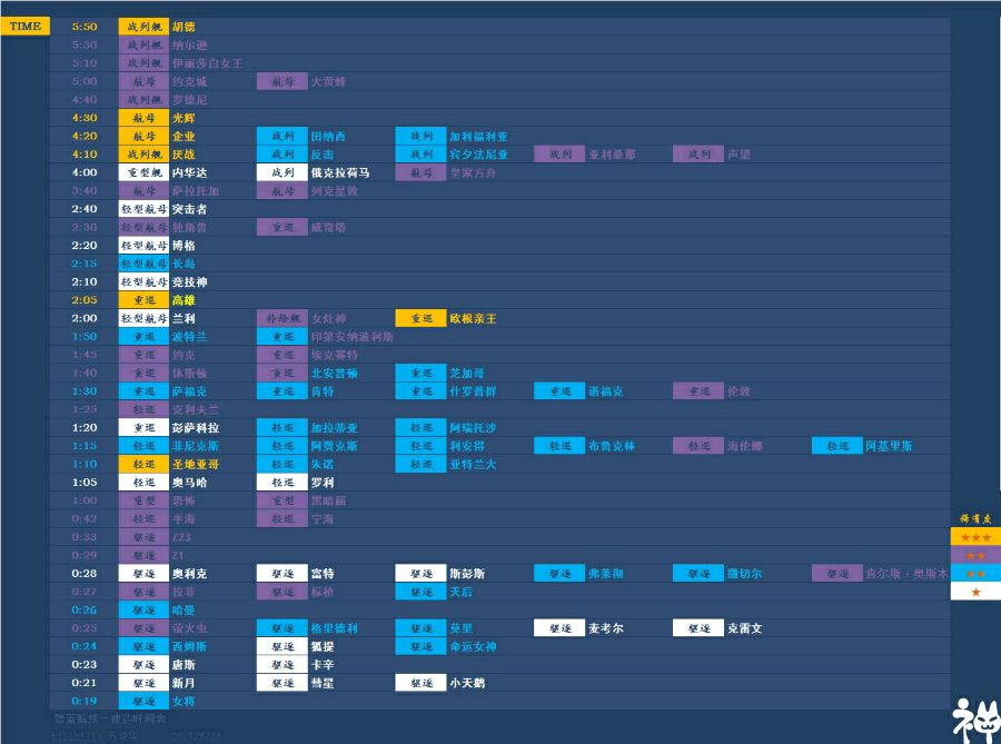 2.轻型舰:主要产出驱逐、轻巡、轻母、维修、重炮等类型的舰娘。