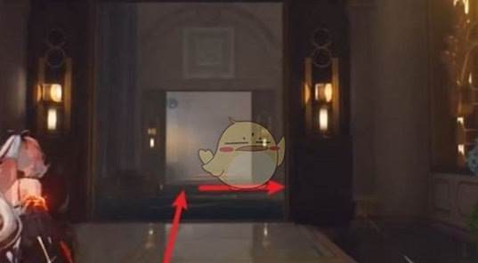 2.金库未知区域宝箱:拿完第一个宝箱后,上楼梯,从箭头所指处的窗口跳进去。进入后一直直走,到达金库未知区域内部。在遗迹的后面,隐藏着第二个宝箱,记得仔细寻找。