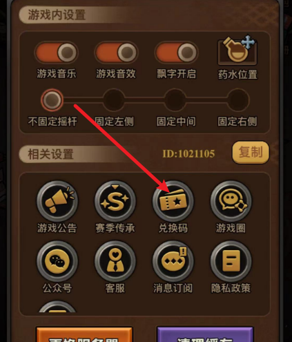 2.找到【兑换码】入口并输入代码