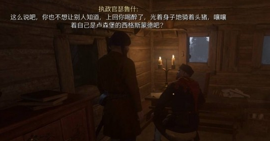 离开市政厅后,前往肉铺附近。在这里,你会发现杜什科正在樵夫罗曼的家外面呼喊罗曼,但罗曼并不在家。在附近房子里可以找到杜什科的妻子,她会指引你去找她丈夫询问。