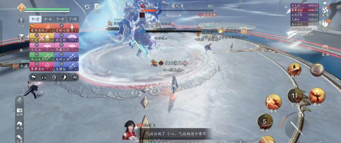 5.暴风震:魔礼青将青云剑插入地面,在脚下释放大范围圆形风暴。玩家要提前预判技能释放时机,尽量躲避该技能,防止积累过多【八风之力】,影响后续战斗。