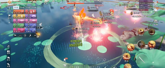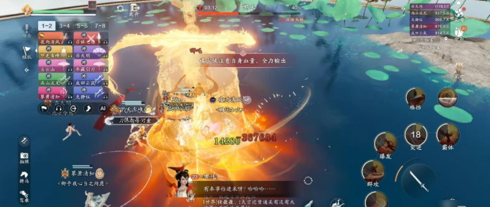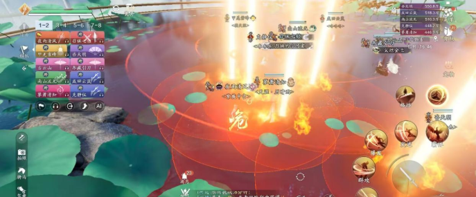 3.火轮驭:第一波点名的莲花标记消失后,哪吒的风火轮会链接2名玩家,被链接的玩家靠近风火轮后即可驾驭。风火轮会周期性向后释放火焰清除地上莲花,但火焰也会灼烧其他队友。玩家可以通过移动镜头的方式操控风火轮的方向,尽量多的消除火莲,同时注意不要让火焰灼烧到队友。