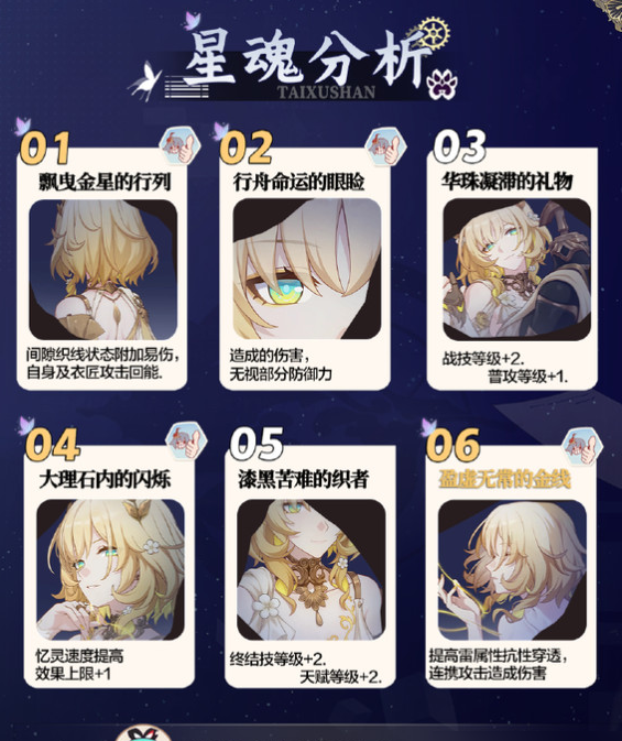 4.连结绳:如果阿格莱雅是0魂,建议优先选择能量恢复效率连接线,保证她能更快地积攒能量释放终结技,维持大招循环;若达到1魂及以上,且队伍中有较好的充能辅助(如星期日、藿藿等),可以选择攻击力连接线,进一步提升输出能力。