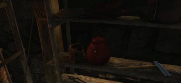 4.进入铁匠铺后,无需与铁匠交谈,直接转向其身后的工作台。在架子上寻找一个醒目的红色罐子,互动后即可获得开锁器及其他随机道具。拿取时需观察周围是否有卫兵或铁匠的视线,避免被发现引发冲突。若不慎被察觉,可快速逃离或尝试潜行离开。