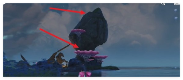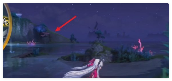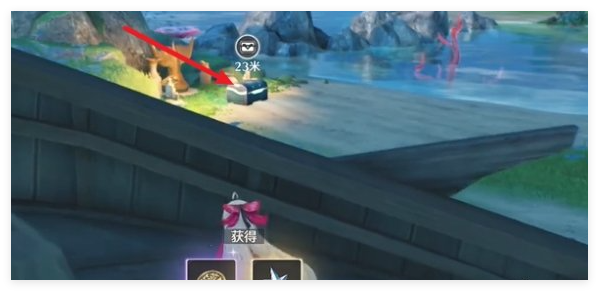 第四个宝箱:到达第三个宝箱所在的岛屿后,面朝北方望去,在箭头指示的位置处,就能获取第四个宝箱。这里视野开阔,很容易定位。