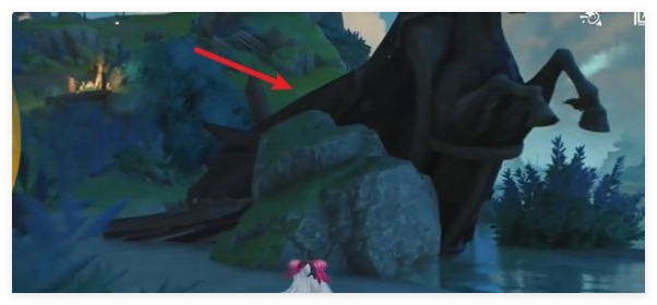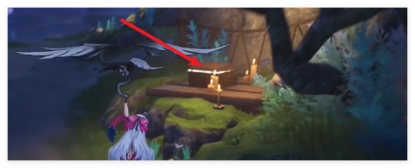 第六个宝箱:将视角转向西北方向,看向箭头指示的地方,第六个宝箱就在那里。这个方位的宝箱位置也不难寻找,依据提示即可发现。