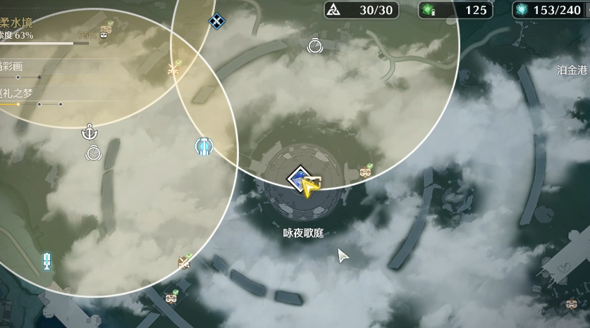 云海之歌BOSS位于氤柔水境的泊金港,具体位置在泊金港的特定建筑的上方。以下是详细的到达步骤: