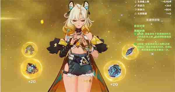 理由:充能效率确保希诺宁的技能循环顺畅,140%的充能效率即可满足大多数战斗需求。