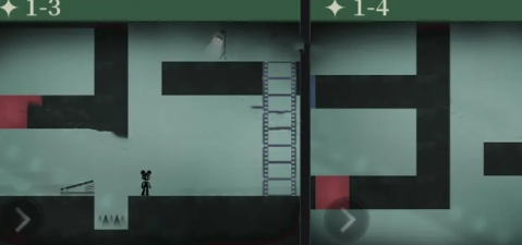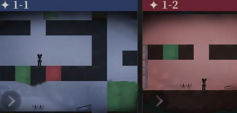 3.障碍物与机关利用:关卡中除了颜色相关的障碍,还有各种箱子、梯子等机关。绿色箱子可以推开,为人偶开辟道路;梯子则能帮助人偶到达更高的平台。在1-1关卡中,推开绿箱子后,站在蓝格子上方,切换胶卷为蓝色,便能落入下层继续前进;1-2关卡里,站在红格子上方,切换成红色再下落;1-3关卡切换为绿色,向右弹跳至对侧;最后在1-4关卡,向右走,爬上梯子后走到聚光灯下完成本关。在后续关卡中,可能还会遇到需要组合运用机关的情况,比如先推动箱子挡住陷阱,再利用颜色切换和梯子到达指定地点。
