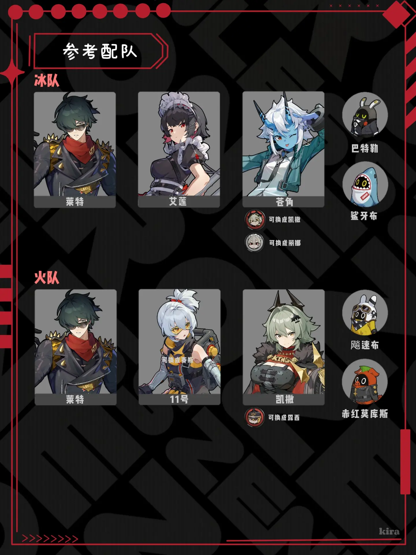 队伍搭配:莱特适合与冰属性或火属性队友搭配,如艾莲、苍角(或凯撒、丽娜)、11号、凯撒(或露西)等。