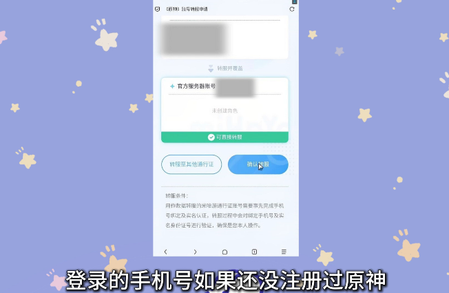 手机号绑定及实名认证:接收数据的米哈游通行证账号需要事先完成手机号绑定及实名认证,转服过程中会对绑定手机号及实名身份证号进行验证。