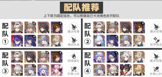 真理医生队:真理医生、托帕、知更鸟、砂金/加拉赫。适用于练度较高的玩家,真理医生的高输出和群体恢复能力在此得到完美体现。