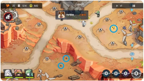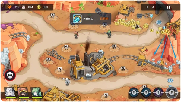 第三波敌人之后,点击左上角的雕像,会有协助作战的单位出现,帮助玩家度过难关。