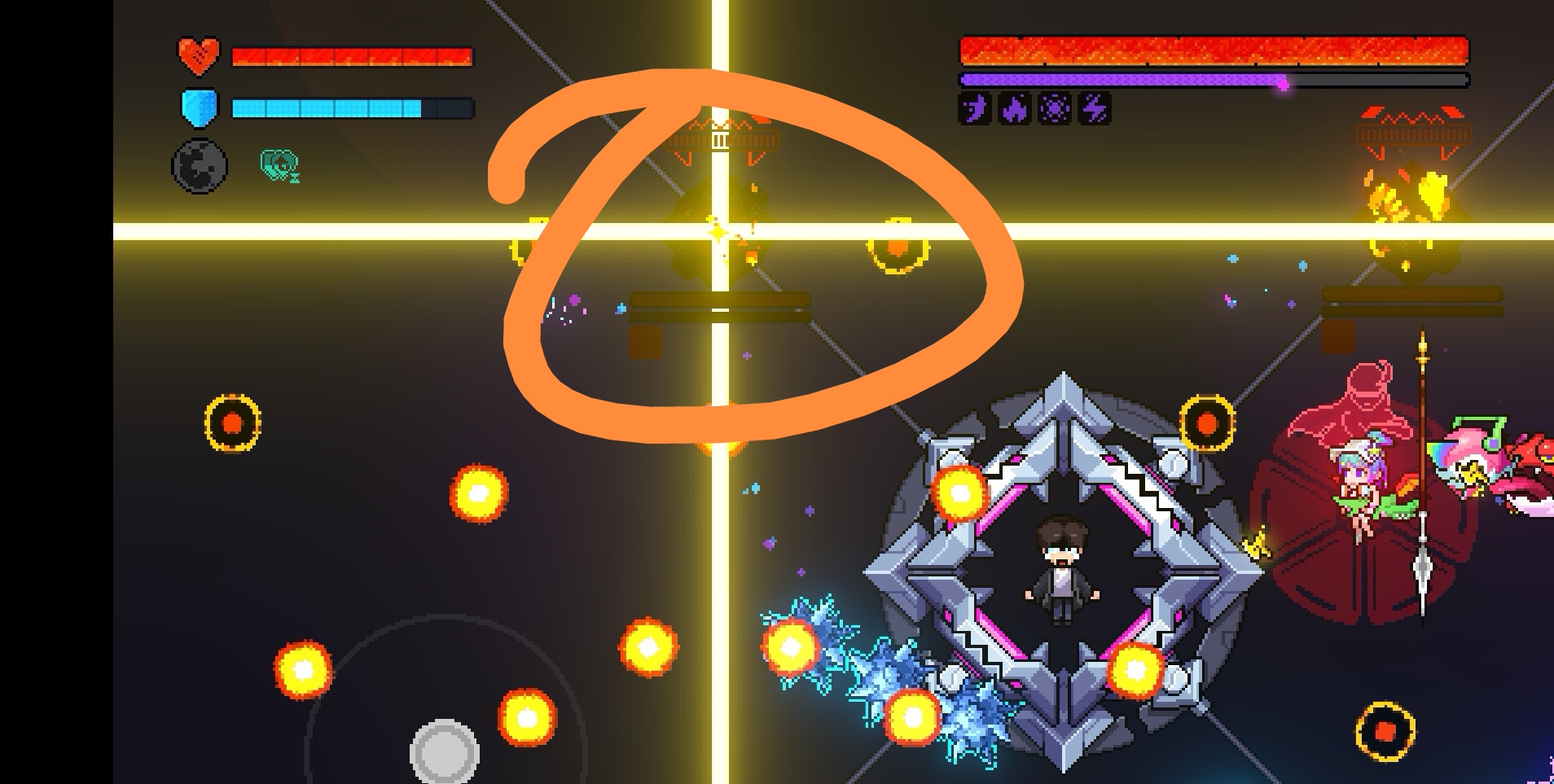 左上角的闪电球:定期向四周发送十字型激光。激光伤害高,需要及时躲避。