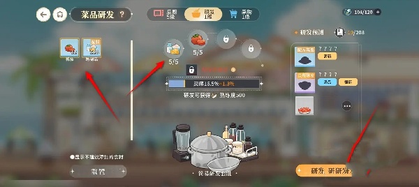 7.启动研发:仔细检查食材无误后,果断点击“开始研发”按钮,启动研发过程。