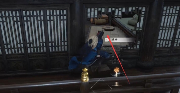 5.从角落跳下至地面,进入宅内房间,在席子上拾取【破旧的小刀】,并与NPC【李总管】对话。
