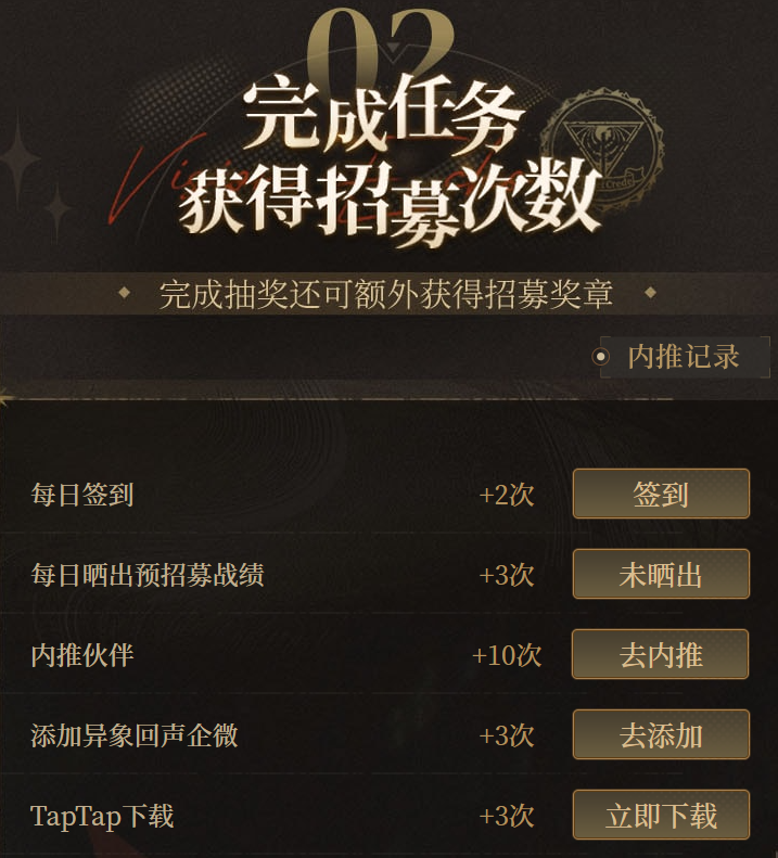 获取抽卡次数:通过关注游戏、预约参与、邀请好友等任务获得。