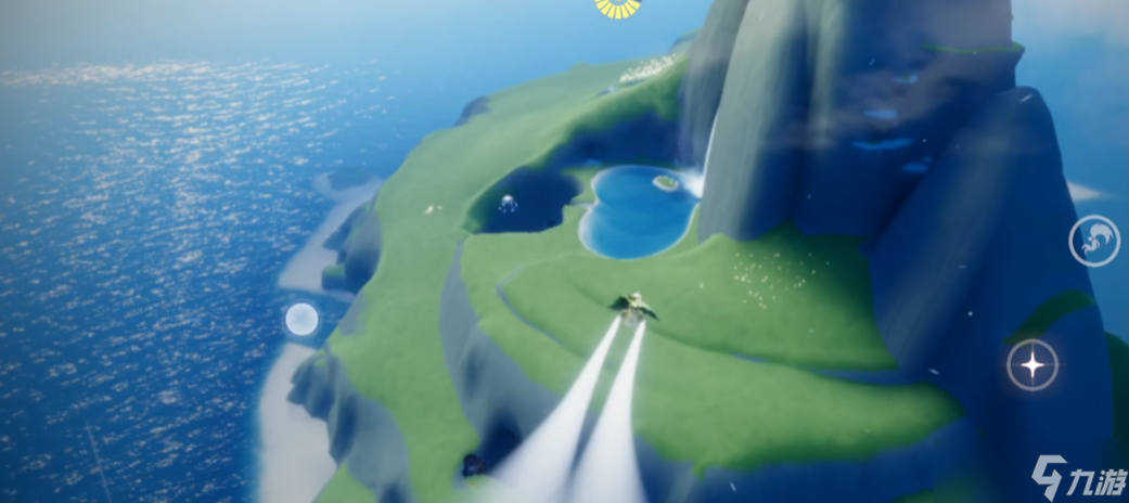 进入圣域群岛后,咱们可以先在高处观察一下地形。这里最显眼的就是大瀑布,从空中往下看,白色水雾特别明显,周围还有几个小岛和浮空石。如果要做打坐任务,可以直接飞到主岛附近,那里有一块平坦的石头,点击打坐按钮就能开始冥想,等圆圈转满就算完成。顺便提一句,这里的大蜡烛位置也挺好找的,跑图的时候可以顺手收一下烛火。