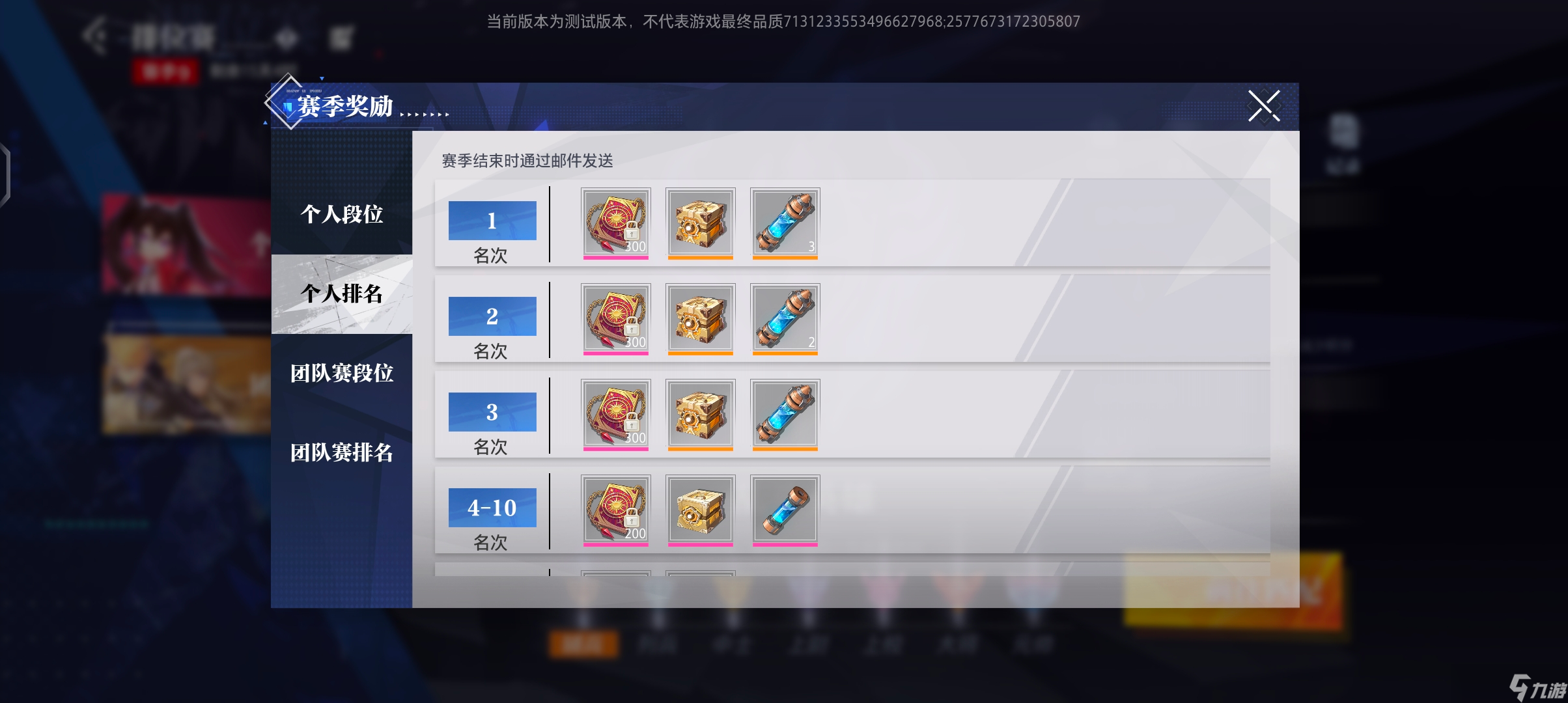 而团队赛同样也有七个段位分别为辅兵、列兵、中士、上尉、上校、大将、元帅。团赛由双方各3名玩家同时参加,进行对战,对战结束可以获得战点奖励,可用来在商城中兑换道具。赛季结算时也会根据玩家的段位及排名发放奖励其中包括狂猎之证、催化剂、高级校准罗盘等!