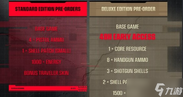 游戏《时间旅者重生曙光》豪华版具有标准版所有的内容,此外,还包含数字原声带&艺术设定集,游戏内资源:手枪弹药x8、散弹枪子弹x3、外壳修补剂(小)x2、1500能量。