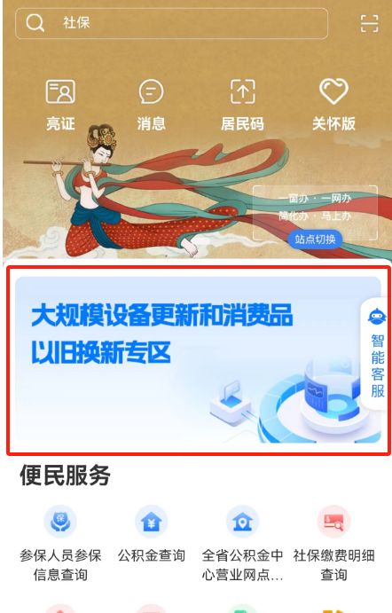 1.进入“甘快办”平台,点击首页“大规模设备更新和消费品以旧换新专区”