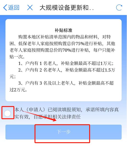 3.了解补贴范围,勾选“已了解”,点击“下一步”